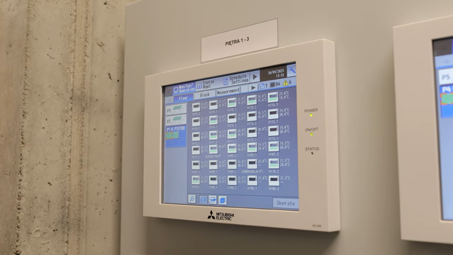 Baltic Park Fort to budynki wyjątkowe także od strony technicznej. Zastosowaliśmy tutaj system HVRF z odzyskiem ciepła, który stanowi jedyne źródło ogrzewania w całym kompleksie. Instalacja obejmuje łącznie 45 jednostek zewnętrznych oraz ponad 660 jednostek wewnętrznych, co pokazuje skalę i złożoność przyjętego rozwiązania. Średnio, do każdego z budynków dostarczamy około 400kW ciepła i chłodu na potrzeby zapewnienia komfortu Gościom i Właścicielom apartamentów Zdrojowa Invest & Hotels. Dla inwestora kluczowe było, aby obiekt pracował ekonomicznie i nowocześnie, dlatego zdecydowano się na urządzenia w technologii HVRF najnowszej generacji. Widać to m.in. w szybkim przejściu na czynnik chłodniczy R32, tuż po jego wprowadzeniu do oferty – Baltic Park Fort Budynek G był jednym z pierwszych obiektów w kraju, gdzie wdrożono to rozwiązanie. Nie bez znaczenia pozostaje też bezpieczeństwo. Układ HVRF, w którym część freonowa jest odizolowana od użytkownika, stanowi rozwiązanie idealne dla tak dużej inwestycji – Goście i Właściciele mogą cieszyć się najwyższym komfortem temperaturowym o każdej porze roku, mając jednocześnie pewność pełnego bezpieczeństwa źródła ciepła.